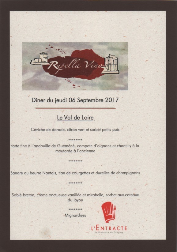 A chaque chapitre, quatre vins sont présentés et dégustés autour d’un repas servi au restaurant "L’Entracte" de Gregory Coutanceau, 35 rue St Jean du Pérot à La Rochelle.